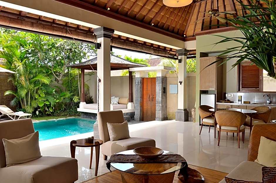 Features a massage table and a personal safe. Includes in-villa check-in and free Wi-Fi. Package inclusions (with a minimum stay of 4 nights) Package inclusions (with a minimum stay of 5 nights) : - One-time, 2.5-hour Truly Balinese Spa Package for two people - One-time romantic in-villa dinner with candles in the pool - Return airport transfers - Welcome drinks and cold towels upon arrival - Flower bath - Honeymoon cake - 10% off food and beverages (excluding alcoholic drinks) - 20% off select spa treatments and DISINI Spa